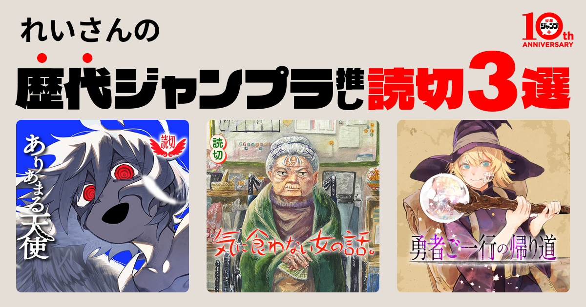 れいさんの歴代ジャンプラ推し読切マンガは『ありあまる天使』『気に食わない女の話。』『勇者ご一行の帰り道』です