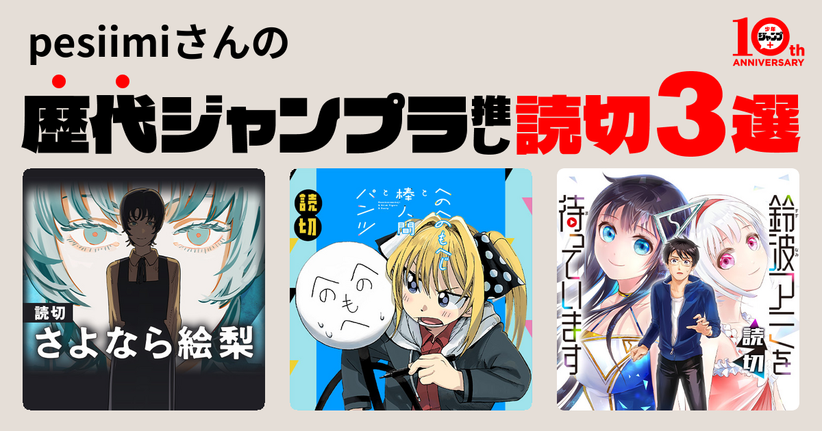 pesiimiさんの歴代ジャンプラ推し読切マンガは『さよなら絵梨』『へのへのもへじと棒人間とパンツ』『鈴波アミを待っています』です