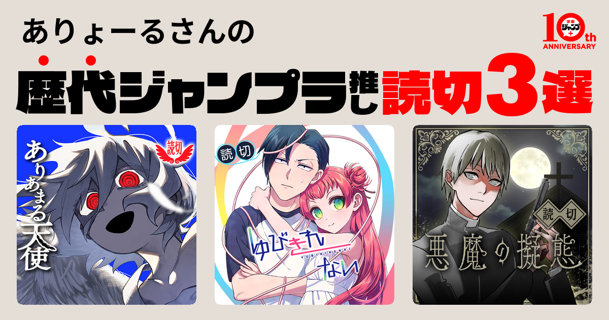 ありょーるさんの歴代ジャンプラ推し読切マンガは『ありあまる天使』『ゆびきれない』『悪魔の擬態』です